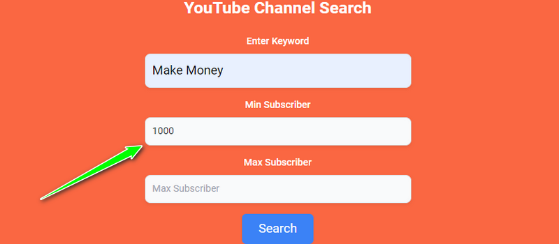 Set Min Subscriber: In the "Min Subscriber" box, enter the minimum number of subscribers you want the channels to have. Use the drop-down menu to set this number. For instance, if you want to find channels with at least 1,000 subscribers, set the value to 1,000.